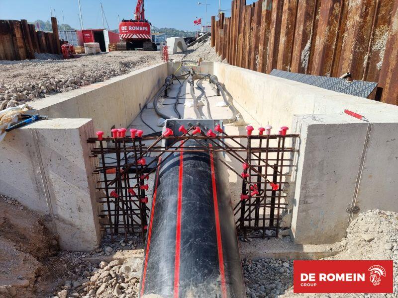 De Romein Group heeft aan haar portfolio een nearshore afdeling toegevoegd. Deze nieuwe tak is het gevolg van de overname van een bestaand familiebedrijf welke gevestigd is in Lisburn (Ierland). Dit bedrijf heeft dezelfde ziel als De Romein, met veel knowhow en technisch hoogwaardig gekwalificeerd personeel. Samen met de Franse collega’s van De Romein SASU realiseert De Romein Nearshore LTD in Fécamp (FR) de aanlanding van een Windmolenpark van RTE. Dit doen wij voor onze opdrachtgever Prysmian.