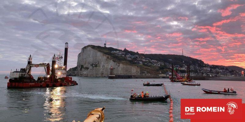 Deze opdracht houdt in het ballasten en afwerken van de powerlines, het herstellen van de kade en de havengeul. Dit alles wordt veilig, netjes en nauwkeurig uitgevoerd in een zeer drukke haven. Onze gemotiveerde medewerkers zullen er voor zorgdragen dat alles over een paar maanden weer in zijn originele staat teruggeven wordt aan de havenautoriteiten van Fécamp. In de nabije toekomst gaat De Romein Nearshore LTD voor dezelfde opdrachtgever nearshore projecten uitvoeren in zowel Frankrijk als ook Duitsland en het Verenigd Koninkrijk.